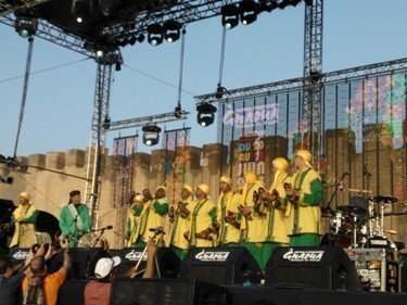 Dimanche soir, le maâlem Baqbou dirige sa troupe avec entrain et une certaine sobriété. Le public assoiffé de transe réclame Lalla Aïcha. Will Calhoun à la batterie mène les percussions à la baguette, le saxophoniste ne retient plus son souffle, tantôt ténor tantôt soprano. Les gnaouis épousent le jazz, la foule en redemande, car le temps d'un weekend, familles et amis oublient les inimitiés et scandent les mêmes louanges divines.
