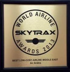 La compagnie Air Arabia (PJSC), le premier et le plus grand transporteur à bas prix au Moyen-Orient et en Afrique du Nord, s’est vu décerné le titre de «Meilleure compagnie aérienne Low-Cost du Moyen-Orient» lors des Skytrax World Airline Awards de 2013.