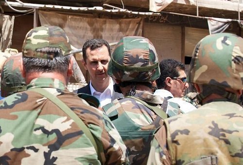 Un peu plus tard, la télévision syrienne a annoncé qu'il s'était rendu à Daraya, localité près de Damas tenue en majorité par le régime, la page Facebook de la présidence syrienne publiant une photo du président serrant la main d'un soldat, dans une zone portant des marques de destruction. Ces interventions médiatiques inhabituelles du président interviennent après la capture lundi par l'armée de Khaldiyé, quartier clé de Homs, troisième ville de Syrie et symbole de la révolte contre le régime, et près de deux mois après cette de Qousseir, bastion rebelle tombé après un an de résistance.