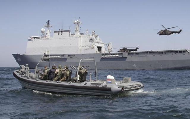 Le Rotterdam, l’un des deux navires amphibies de la marine néerlandaise, est capable d’accoster même en l’absence d’infrastructures portuaires. L’année dernière, il a été mobilisé pour lutter contre les pirates somaliens.
