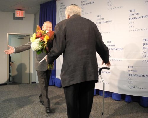 Leon Gersten, âgé aujourd'hui de 79 ans et devenu Américain, accompagné de ses enfants, petits-enfants et arrière-petits-enfants, a serré avec émotion la main de Czeslaw Polziec, 81 ans, à son arrivée à l'aéroport JFK de New York. Les deux hommes s'étaient séparés en 1944, alors qu'ils étaient âgés d'une dizaine d'années, quand les Russes avaient libéré leur village de Frysztak. Leon Gersten avait alors émigré à New York. « Pour moi et mes enfants, ce sont des héros », a déclaré M. Gersten, qui a pu se cacher avec sa mère, sa tante, son oncle et son cousin, de 1942 à 1944, dans la grange de l'humble ferme de la famille Polziec.