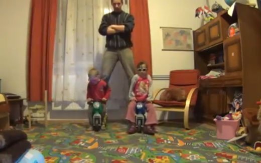 Même les enfants ne sont pas restés indifférents. La vidéo a suscité de nouveaux jeux avec leurs bicyclettes en plastique: