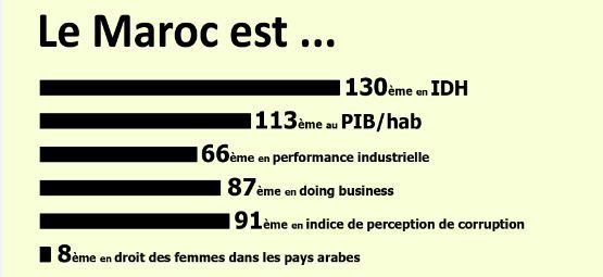 1. PIB/habitant : en parité de pouvoir d’achat, le PIB marocain par habitant est de 4.712 dollars en 2010, classant le pays au 113è rang mondial. Ces chiffres sont ceux de la Banque Mondiale.