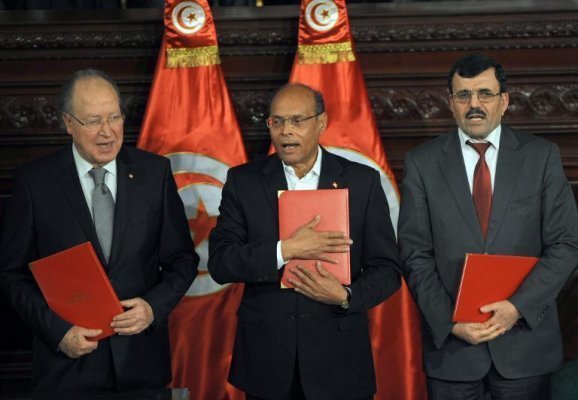 Le chef de l'Etat tunisien Moncef Marzouki, le Premier ministre sortant Ali Larayedh et le président de la Constituante, Mustapha Ben Jaafar ont signé lundi la nouvelle Constitution du pays, un évènement historique pour le berceau du Printemps arabe.