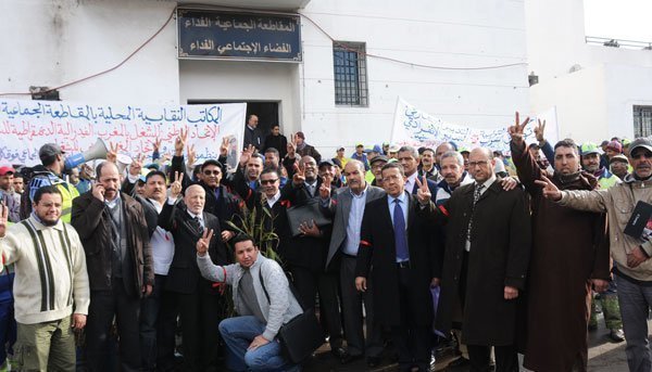 Devant le bâtiment, un sit in s’y tenait. Les fonctionnaires communaux, les conseillers et les agents de nettoyage s’y sont donné rendez-vous. Trois syndicats ont répondu à l’appel, l’UGTM, la FDD et l’ONTM, avec pour seul mot d’ordre le départ de Saïd Hasbane.