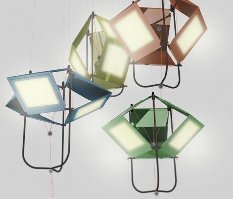 Chaque lampe est constituée de six panneaux qui sont maintenus ensemble par l'intermédiaire d'un manchon de polyuréthane et d’un fil cadrage, et peuvent facilement être manipulées afin d'ajuster la trajectoire de la lumière. Le résultat est surprenant.