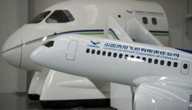 Dans une vidéo publicitaire de la Comac, un choeur de jeunes pionniers invite à bâtir un "avion glorieux", un chant patriotique qui compare l'appareil à une "Grande muraille dans le ciel", en référence à la prouesse chinoise sur terre d'il y a plus de 2000 ans.