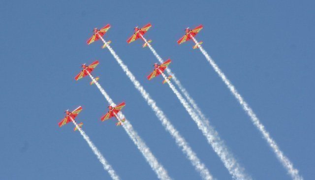Les pilotes des huit appareils cap 232, des monoplaces conçus pour la voltige aérienne, ont exécuté leur show en effectuant des manœuvres et acrobaties aériennes compliquées suscitant l'admiration des amateurs des sensations fortes mais aussi d'un large public charmé par l'harmonie et l'agilité des tableaux aériens, individuels et collectifs, de haut vol réalisés.