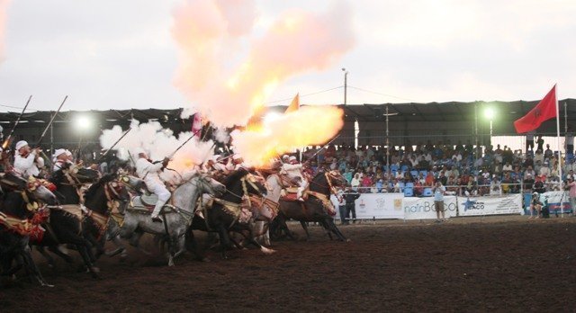 Des centaines de cavaliers, représentant plus de 30 sorbas des différentes régions du Maroc, se succèdent fièrement sur la Place Mehrek, affichant leur élégance sur leurs magnifiques montures et exécutant avec grâce et adresse des gestes où maniement habile des fusils et synchronisation des tirs sont les maitres mots.