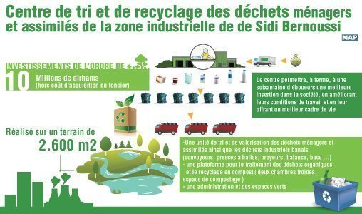 A court terme, le centre devrait recevoir entre 60 et 70 tonnes de déchets ménagers et assimilés, sachant que le quartier Bernoussi compte 600.000 habitants.