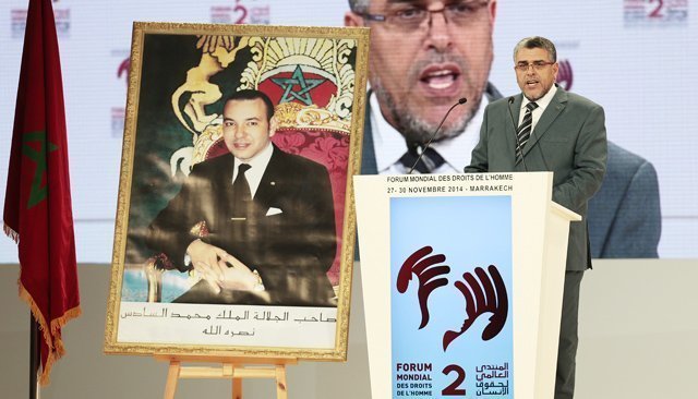 C’est un discours du Roi Mohammed VI qui a ouvert le 2e Forum Mondial des Droits de l’Homme le jeudi 27 novembre à Marrakech. Mostafa Ramid, ministre de la Justice et des libertés en a donné lecture. En voici les principaux points. Des signaux importants ont été donnés par le Roi : l’appropriation des valeurs par les pays du Sud sera progressive ; ces pays souhaitent et peuvent contribuer à produire de nouvelles normes dans ce domaine ; des textes marocains vont être votés tels que le projet de loi contre les violences faites aux femmes (comprenez : il est en retard), le Roi s’est félicité enfin du débat national sur l’abolition de la peine de mort: