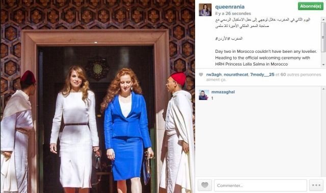 Sur son compte Instagram, la Reine Rania de Jordanie a publié mercredi soir une nouvelle photo avec la Princesse Lalla Salma, au moment où elles se dirigeaient vers la cérémonie d'accueil officiel réservé par le Roi Mohammed VI au Roi Abdallah de Jordanie.