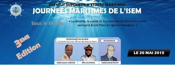 L'Institut supérieur d'études maritimes organise, le 20 mai 2015, la 3e édition des Journées maritimes de l'Ise'm, sous le thème "La sécurité, la sureté et la protection de l’environnement portuaire & les plans d’urgence portuaires".