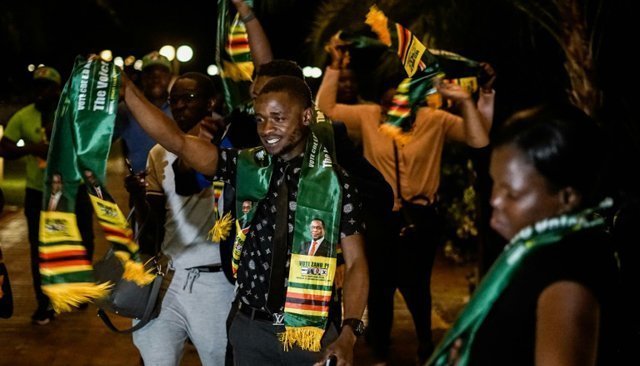 Des militaires étaient visibles à des points névralgiques d'Harare. Un petit groupe de sympathisants de la Zanu-PF dansaient devant l'hôtel Rainbow Towers, qui abrite les bureaux de la commission électorale à Harare.