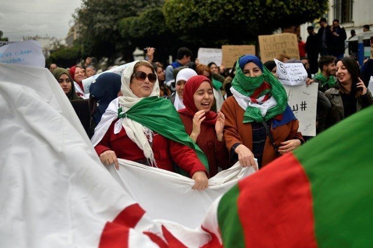 Les rassemblements ont coïncidé avec la célébration du 8 mars, Journée internationale des Femmes, et un grand nombre d'entre elles figuraient parmi les manifestants de tous âges qui ont défilé dans le calme, aux cris de "Pouvoir, assassin", ou "Pas de 5e mandat, eh Bouteflika!".