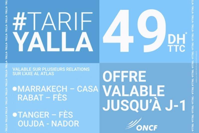 Après les améliorations apportées par les trains Al Atlas assurant les liaisons Marrakech-Casablanca-Fès et étendus dernièrement jusqu’à Tanger et l’Oriental, l’ONCF lance l’offre Yalla pour des voyages vers plusieurs destinations à 49 DH.
