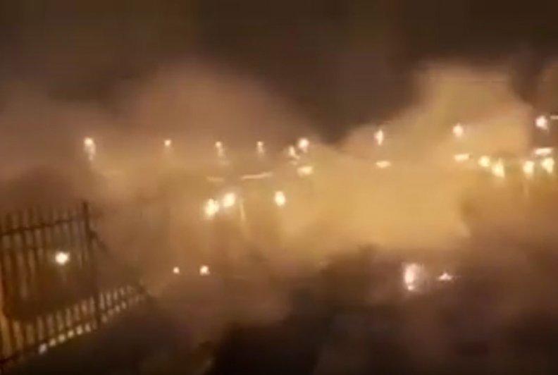Des images publiées sur les réseaux sociaux montrent de la fumée sortant du toit de la salle de prière Marwani.