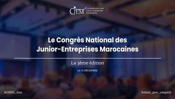 La Confédération des junior-entreprises marocaines organise la troisième édition du "Congrès national des junior-entreprises marocaines", son événement phare de l’année qui sera tenu le 21 décembre 2019 au Sofitel Tour blanche à Casablanca.