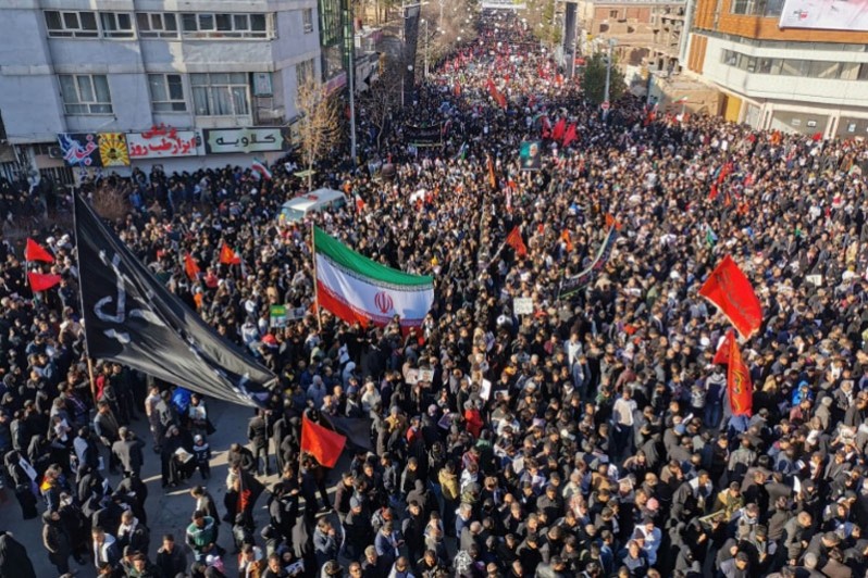 Pendant l'hommage à Kerman, sa ville natale du sud-est de l'Iran, une foule immense a réclamé vengeance aux cris de "Mort à l'Amérique", comme lorsque son cercueil a fait étape, dimanche et lundi, à Téhéran et dans d'autres localités iraniennes.
