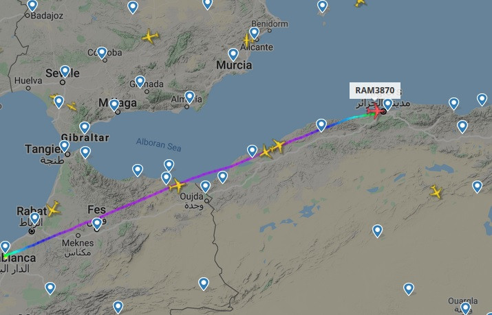 Peu après 10H00, ce samedi matin 30 mai, 3 avions de la RAM étaient en route vers Alger. Il s’agit des vols AT 3870, AT3872 et AT3874. Tous trois des 737-8B6. Ils ont atterri entre 12h et 12h30 à l'aéroport de Oujda avec à leur bord 300 Marocains parmi ceux bloqués en Algérie.