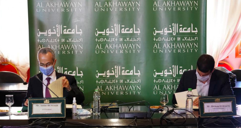 Ce vendredi 11 septembre à Ifrane, Amine Bensaid, président de l'université Al Akhawayn (AUI) et Hicham El Habti, secrétaire général de l'Université Mohammed VI polytechnique (UM6P), ont procédé à la signature d'un mémorandum d'entente pour renforcer leur coopération en matière d’enseignement, de recherche, d'innovation et d’échange d’expérience.