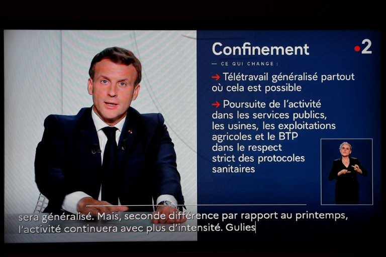 "L'économie ne doit ni s'arrêter, ni s'effondrer", a souligné mercredi le président de la République Emmanuel Macron après avoir annoncé un reconfinement national pour lutter contre la propagation du Covid-19.