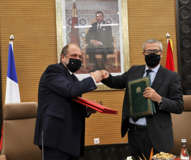 En déplacement officiel au Maroc pour renforcer notre coopération judiciaire notamment sur la question des mineurs non accompagnés. Excellent échange et signature d’une déclaration avec mon homologue ministre de la Justice @MohammedBenab11. pic.twitter.com/LLrRTysto8