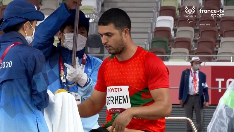 Plus tôt dans la journée, Zakariae Derhem a offert au Maroc sa deuxième médaille d’or dans l'épreuve du lancer du poids (classe F33), en battant le record paralympique, devant l'Algérien Kamel Kardjena (11.34 m) et le Croate Deni Serbi (11.25 m), alors que Azeddine Nouiri a remporté l'argent lors de l'épreuve du lancer du poids (classe F34).