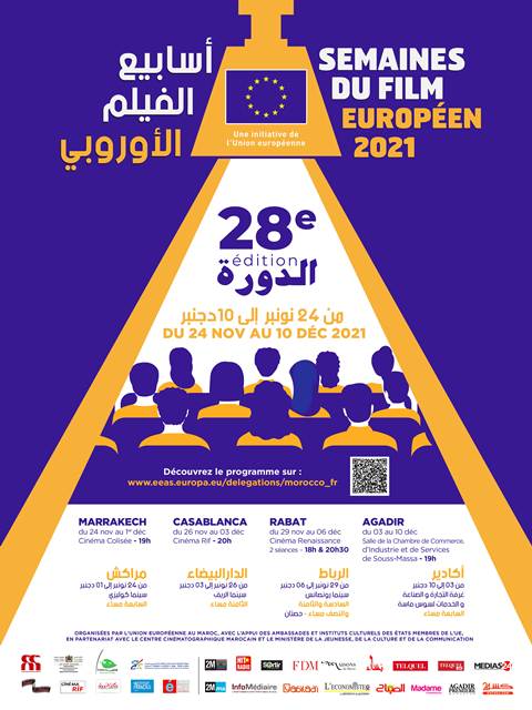 La 28e édition des Semaines du film européen se déroulera du 24 novembre au 10 décembre à Marrakech, Casablanca, Rabat et Agadir. La sélection est composée cette année de 8 longs métrages européens et 4 courts métrages du sud de la Méditerranée.