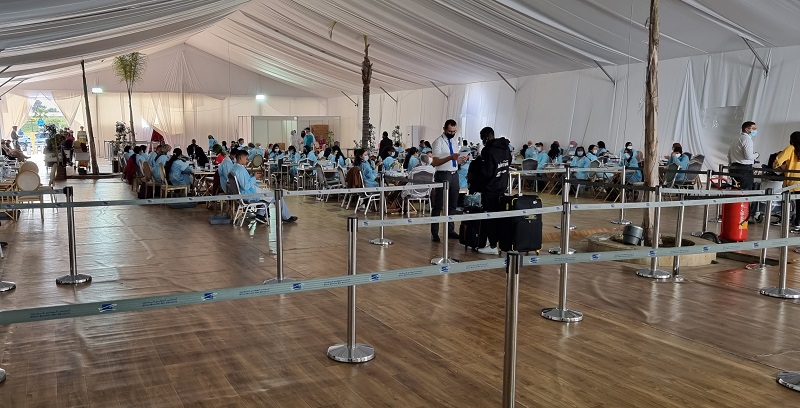 Après avoir dépassé le filtre de police en charge du contrôle des passeports, les passagers ont récupéré leurs bagages avant de passer un dernier filtre de douaniers et, enfin, se diriger vers deux chapiteaux dressés à la sortie de l’aéroport pour se soumettre à un test antigénique effectué par une soixantaine d’infirmières.