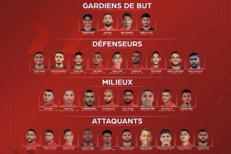 Pour disputer ces confrontations amicales servant de préparation à la phase finale de la Coupe du monde au Qatar, Walid Regragui a convoqué un groupe de 31 joueurs “pour en voir un maximum avant la Coupe du monde”, a-t-il justifié. Parmi eux, cinq joueurs de la Botola Pro.