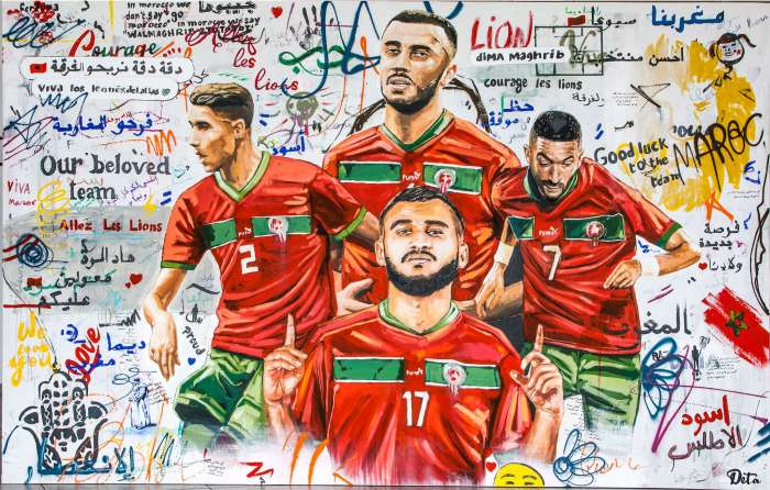 Cette œuvre, conçue par l’artiste Hassan Fayz, a pour objectif d’illustrer la ferveur et le soutien des supporters marocains, à moins de trois semaines du début de la Coupe du monde au Qatar.