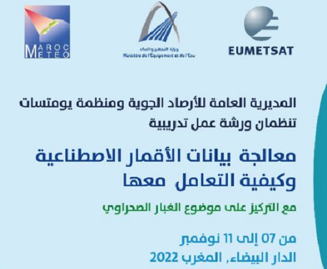 La Direction générale de la météorologie organise, en collaboration avec l'Organisation européenne pour l'exploitation des satellites météorologiques (EUMETSAT), un atelier de formation sur la "Manipulation et traitement des données satellitaires, accent sur les poussières désertiques".