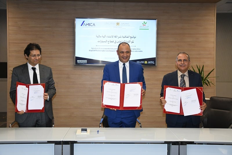 Une convention pour l’accompagnement des entreprises opérant dans le secteur automobile a été signée ce jeudi 15 juin à Rabat par le ministre de l’Industrie et du commerce, Ryad Mezzour, le président du directoire du Crédit agricole du Maroc, Mohammed Fikrat, et le président de l’Amica, Hakim Abdelmoumen.