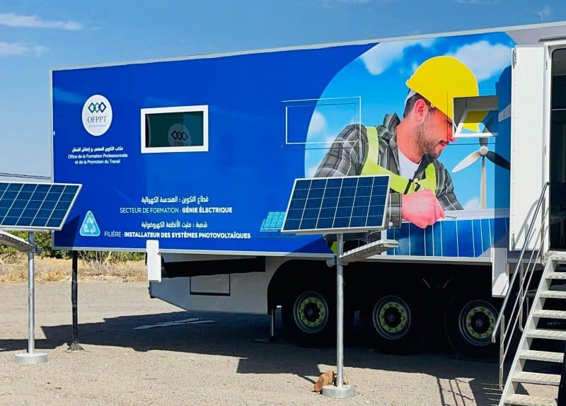 Dans ce cadre, 5 unités mobiles de formation ont été équipées pour accueillir les stagiaires des branches des énergies renouvelables, d'électricité et de la maintenance automobile.