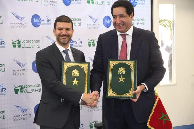 Cet accord, qui a été signé par Hicham El Habti, président de l’UM6P et de la fondation MAScIR, et Farid Bennis, président de Laprophan, vise aussi à contribuer au développement des provinces du Sud.