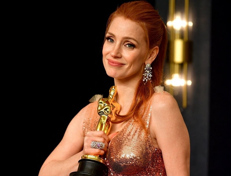 En 2022, elle a été sacrée meilleure actrice lors de la 94e cérémonie des Oscars pour son interprétation de l’inimitable Tammy Faye dans Dans les yeux de Tammy Faye (2021).