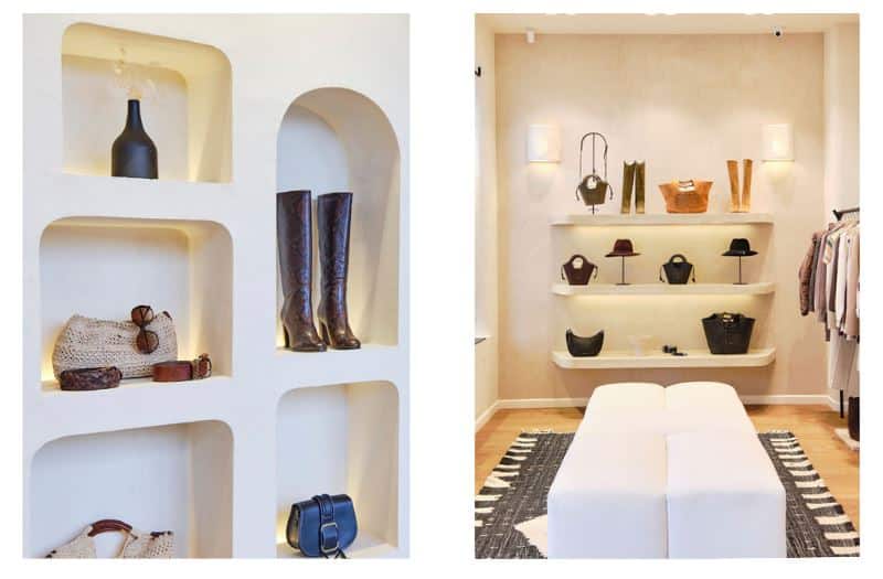 La boutique est entièrement habillée de couleurs évoquant la terre (argile, sable, grège). Les murs sont ponctués de niches de présentation aux lignes organiques, poursuit la même source.