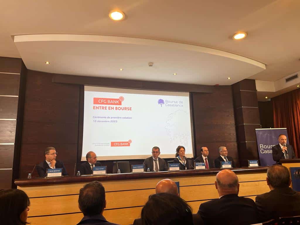 Ce lundi 18 décembre marque le premier jour de cotation de CFG Bank, nouvel arrivant sur la cote casablancaise. Le groupe fondé par Adil Douiri et Amyn Alami est officiellement devenu la septième banque cotée de la place.