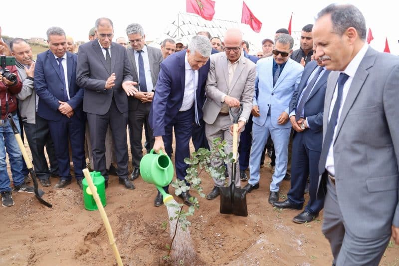 Dans la commune territoriale de Jnane Bouih, relevant de la province de Youssoufia, le ministre a lancé les travaux de plantation de 200 ha de câprier et de 80 ha de cactus dans le cadre de la première tranche d’un projet d’agriculture solidaire pour le développement des systèmes de production résilients aux changements climatiques.