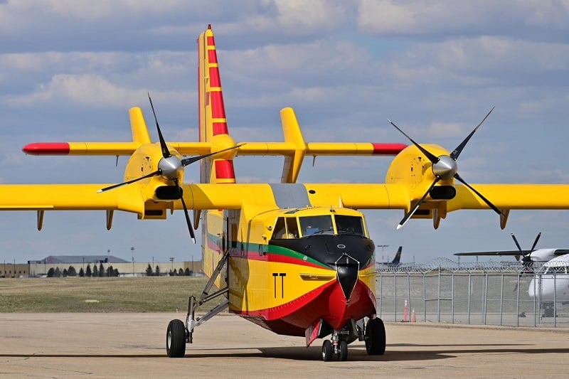 Les CL-215 doivent subir deux conversions. "La première conversion au standard CL-215T, qui concerne les trois Canadair, consiste à changer les vieux moteurs à piston Pratt & Whitney Canada R-2800 Double Wasp de 2128 ch par de nouveaux moteurs turbopropulseurs Pratt & Whitney Canada PW123AF de 2420 ch, les mêmes que ceux du CL-415", poursuit la même source.