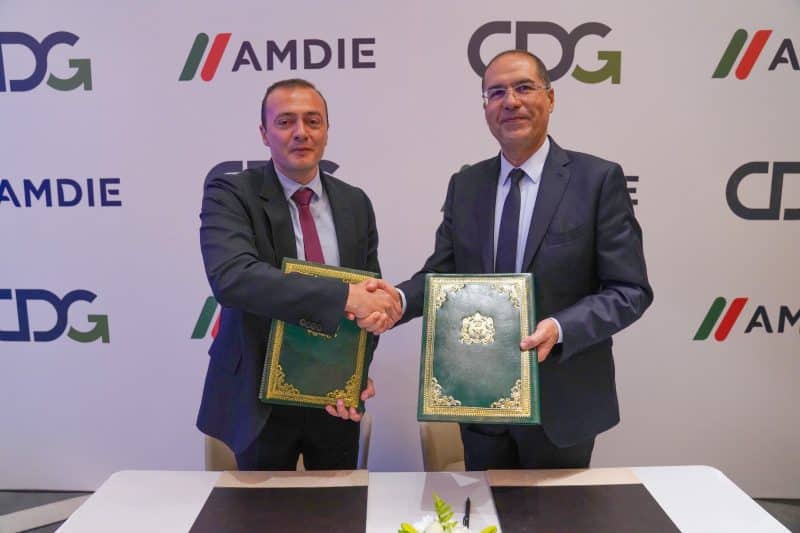 La convention cadre a été signée par Khalid Safir, directeur général de la CDG, et Ali Seddiki, directeur général de l'AMDIE.