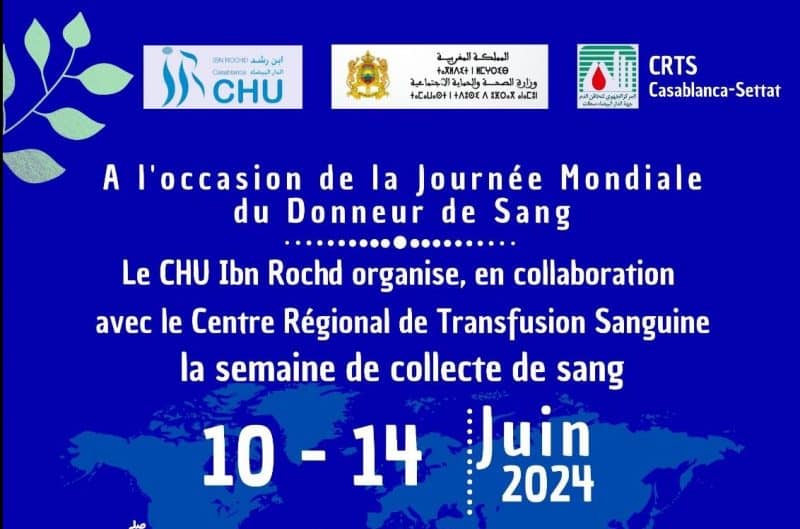 Le Centre hospitalier Ibn Rochd de Casablanca organise, en partenariat avec Centre régional de transfusion sanguine (CRTS), la Semaine de collecte de sang.