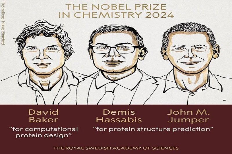 The Royal Swedish Academy of Sciences has decided to award the 2024 #NobelPrize in Chemistry with one half to David Baker “for computational protein design” and the other half jointly to Demis Hassabis and John M. Jumper “for protein structure prediction.” pic.twitter.com/gYrdFFcD4T— The Nobel Prize (@NobelPrize) October 9, 2024