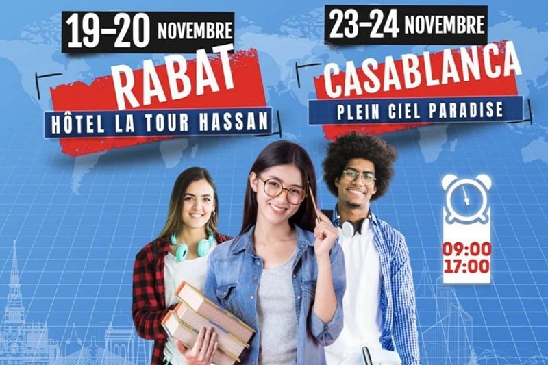 Le Salon des études en France et de l'International Studies Fair aura lieu à Rabat le 19 et 20 novembre à l'hôtel La Tour Hassan, et à Casablanca le 23 et 24 novembre au Plein Ciel Paradise.