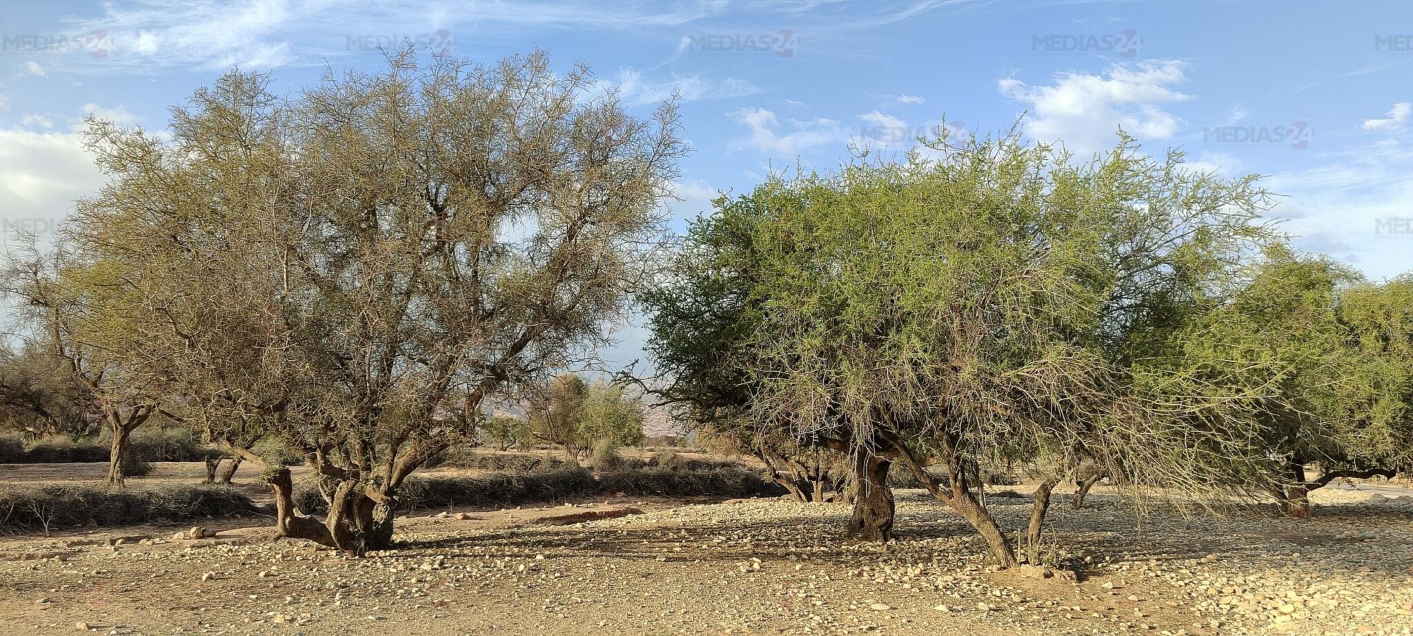 En parvenant au niveau de la réserve de la biosphère de l'arganeraie, c’est un autre paysage que le voyageur doit scruter pour y déceler les effets du climat. Profitant des dernières pluies, l'arganeraie a revêtu des couleurs vives, bien que certains arbres n'aient pas encore développé leurs feuillages. De loin, on les croirait même morts. Et, en effet, certains ont effectivement rendu l'âme, n’ayant pu survivre à la succession des dernières années de sécheresse. La vie de l’arganeraie oscille entre des scènes de décrépitude, avec des arbres à feuilles en piteux état, et d’autres plus réjouissantes, avec des arbres en pleine vigueur dès qu'il pleut. C’est un arbre sphinx, mais qui a beaucoup souffert ces dernières années. Le niveau de souffrance se mesure à l’aune de la production qui est en baisse vertigineuse et, conséquemment, à celui du prix prohibitif de l’huile d’argan.