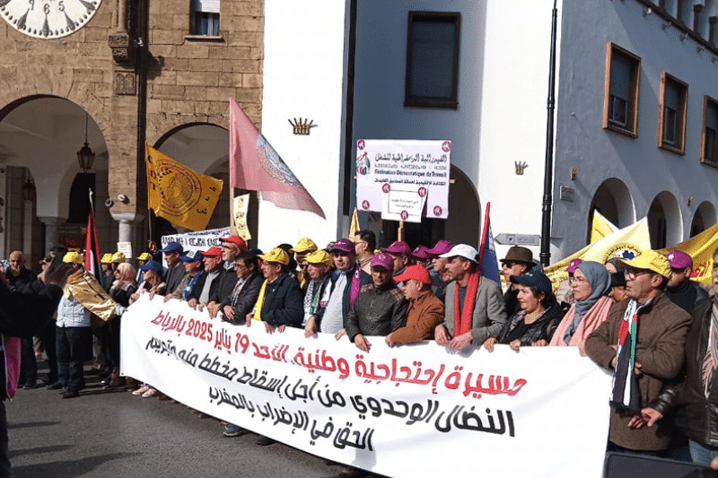 La marche nationale, qui a débuté à 10h30 depuis la place Bab El Had, a rassemblé des centaines de manifestants issus de divers syndicats, associations et partis politiques. Les participants brandissaient des banderoles et scandaient des slogans exigeant la protection des acquis sociaux et la préservation du droit de grève, reconnu comme un droit constitutionnel au Maroc.