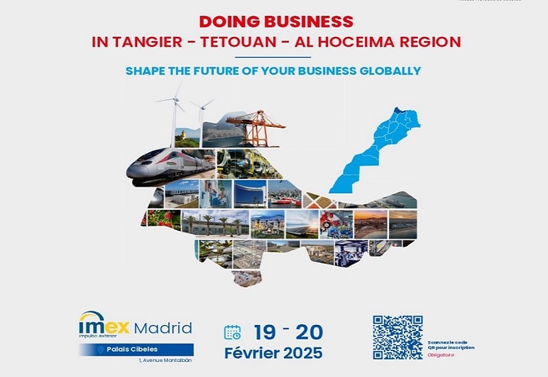 Le Centre régional d'investissement et la Chambre de commerce espagnole à Tanger organisent les rencontres d’affaires “Doing Business in Tangier-Tetouan-Al Hoceima Region”, qui se tiendront lors de la 23ᵉ édition de l'IMEX, les 19 et 20 février 2025 à Madrid.