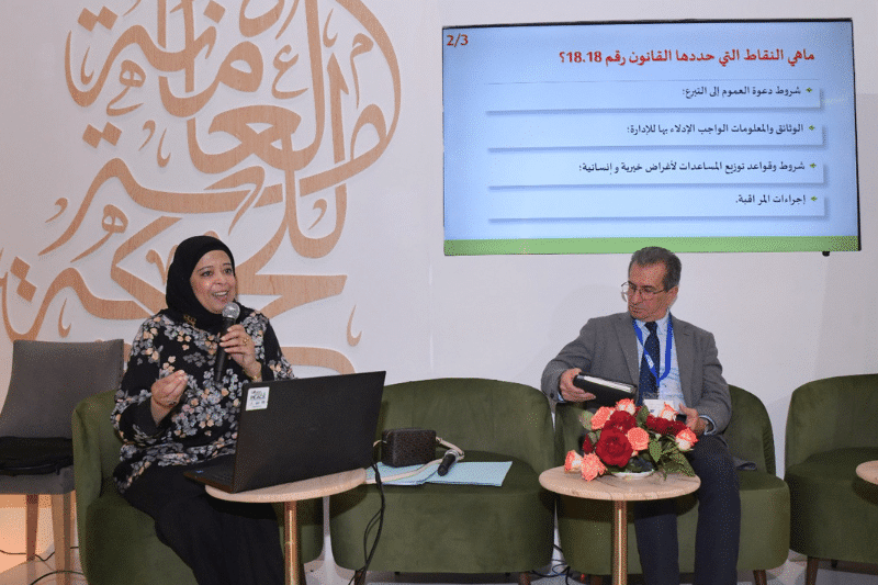 À cette occasion, Nezha Hafidi, cadre au sein de la Direction des associations, a présenté les principales dispositions de la loi n° 18.18 relative à l’organisation des appels à la générosité publique et à la distribution d’aides à des fins caritatives, ainsi que de son décret d’application n°2.25.152.