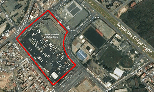 La carte ci-dessous illustre la vue aérienne de la gare routière Oulad Ziane :